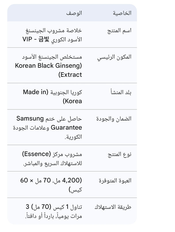 خلاصة مشروب الجينسنغ الأسود الكوري - VIP