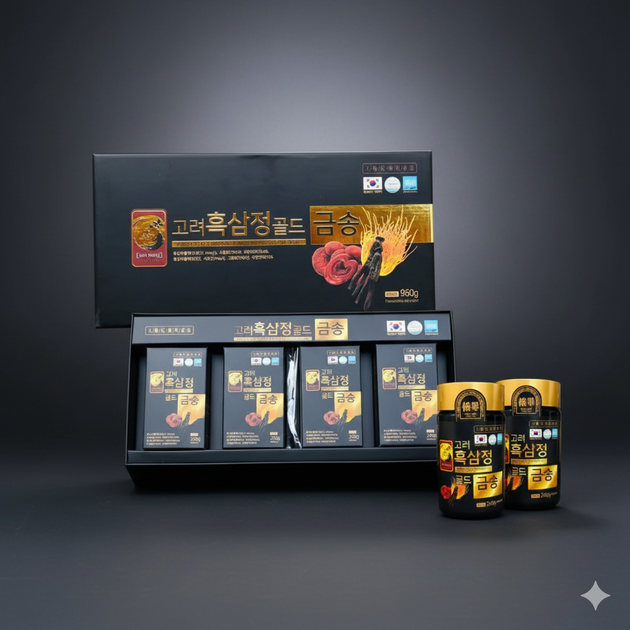Korea Black Ginseng Extract Gold Geum Song مستخلص الجينسنغ الكوري الأسود الذهبي – غوم سونغ 📦 المواصفات: المنشأ: كوريا الجنوبية 🇰🇷 الوزن الصافي: 240 جم × 4 عبوات الشكل: مستخلص سائل مركز معتمد من: HACCP...Sale price ₩13,000Regular price ₩200,000 -