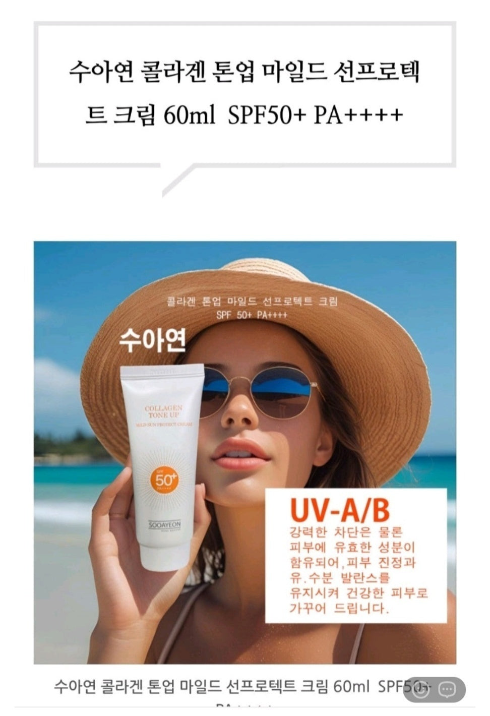 SOOAYEON Collagen Tone Up Mild Sun Protect Cream SPF 50+ PA++++